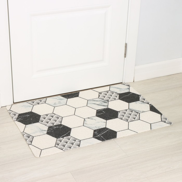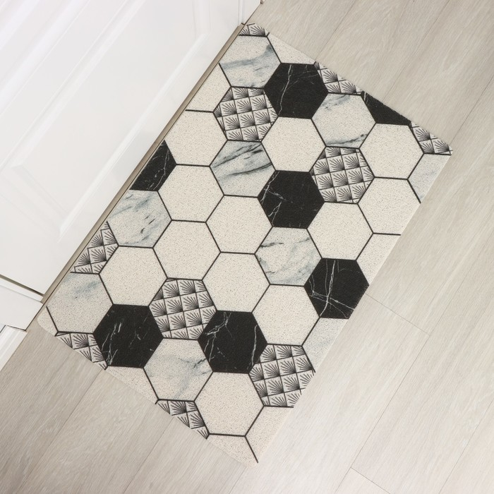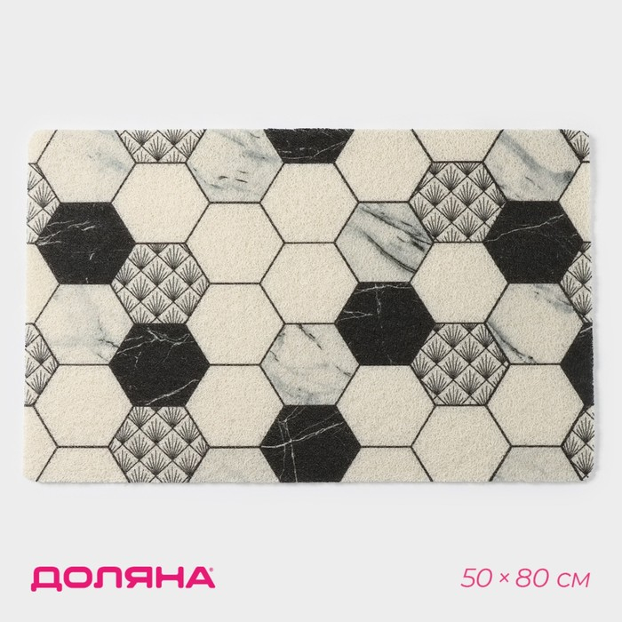 Коврик придверный грязезащитный Доляна «Мрамор», вырезной, 50×80 см, цвет серый