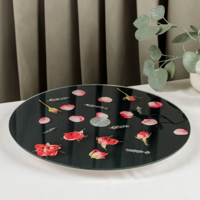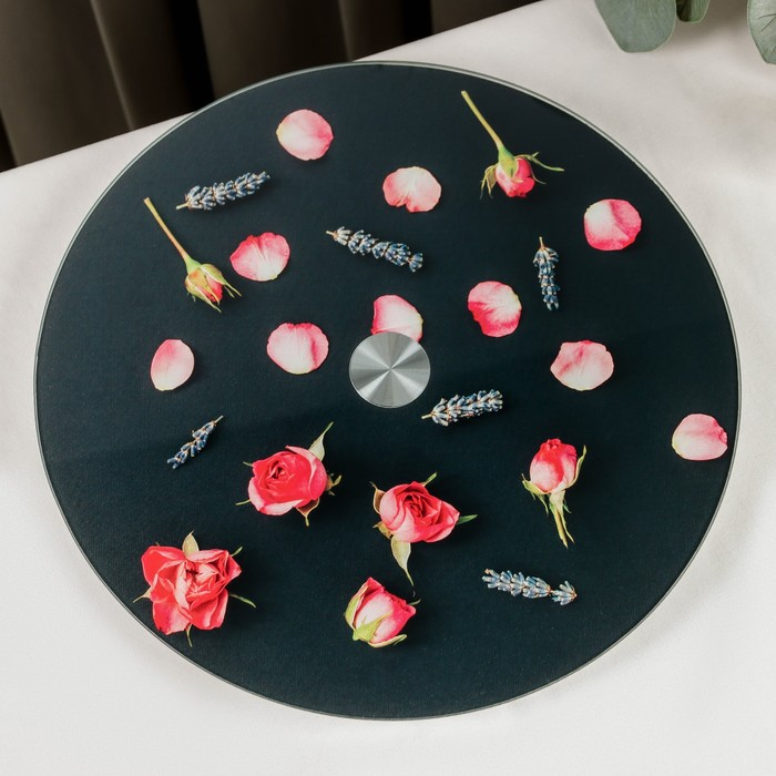 Подставка стеклянная для торта вращающаяся Magistro «Розы на чёрном», d=32 см, цвет чёрный