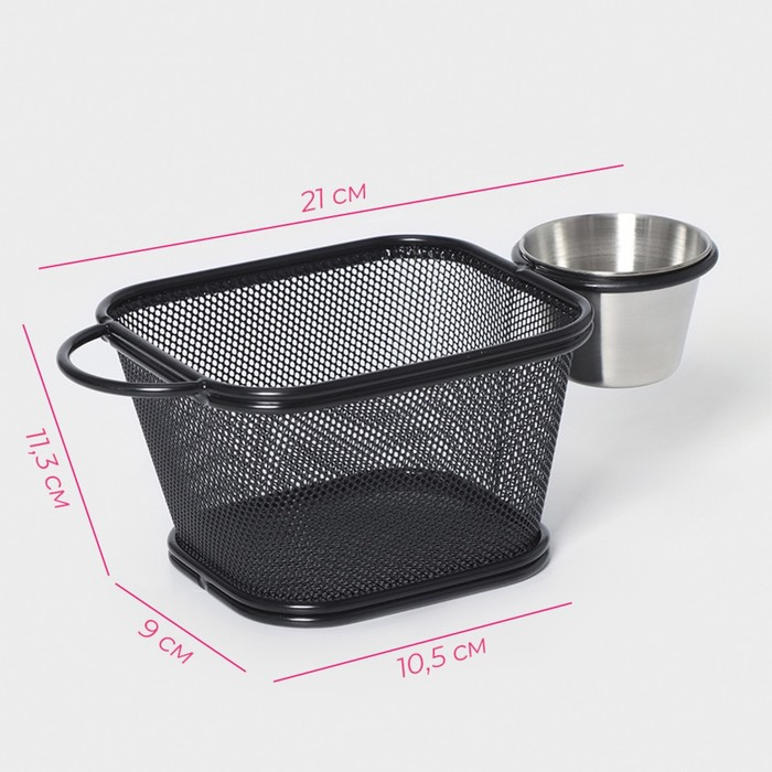 Корзинка для картофеля фри Доляна «Ночь», 10×8×8,5 см, с соусником d=9,5 см, цвет чёрный