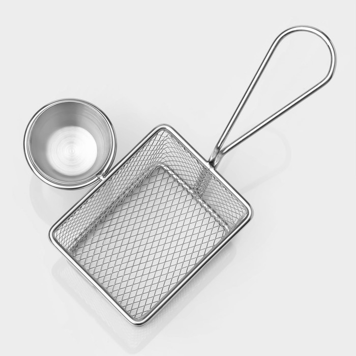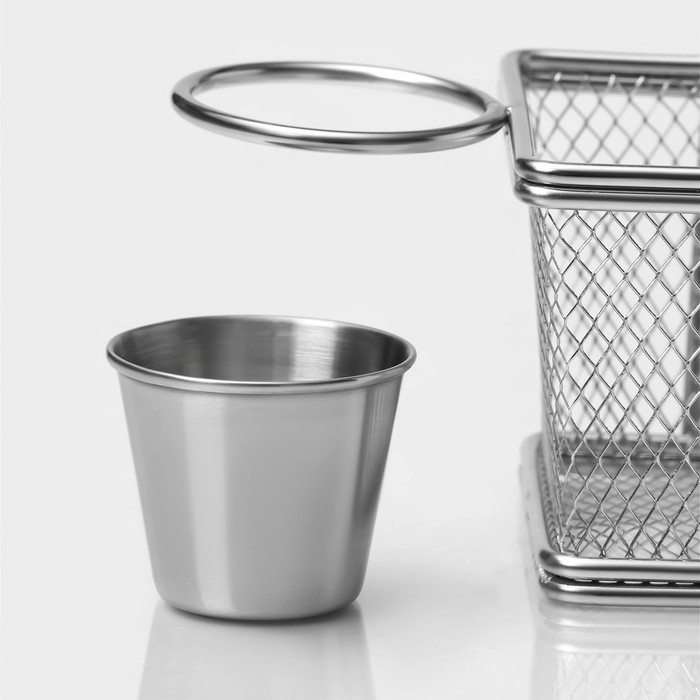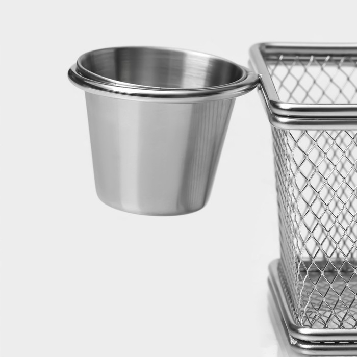 Корзинка для картофеля фри Доляна «Лонгфилд», 10×8×7,5 см, с соусником d=5 см, цвет серебристый