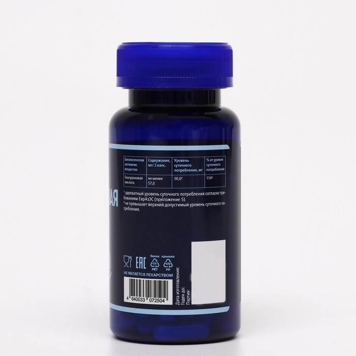 Гиалуроновая кислота 300 мг в капсулах, БАД для лица, кожи и суставов, 60 капсул/таблеток