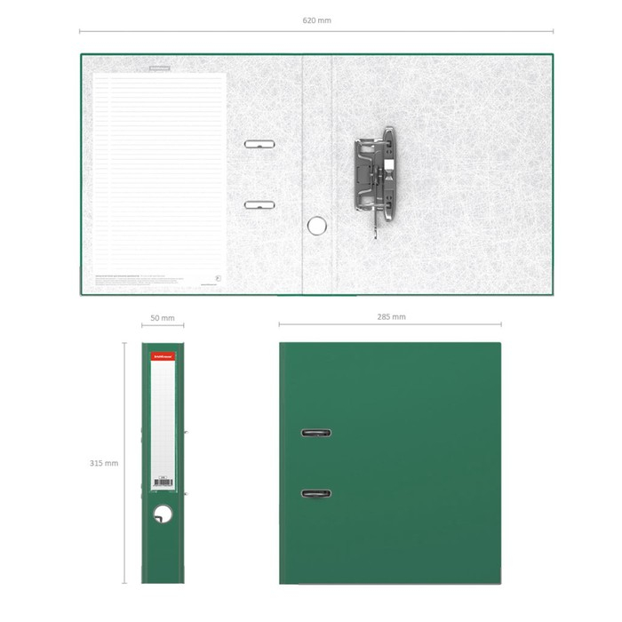 Папка-регистратор А4, 50мм "Бизнес", собранная, зелёная, картон 2мм, вместимость 350 листов