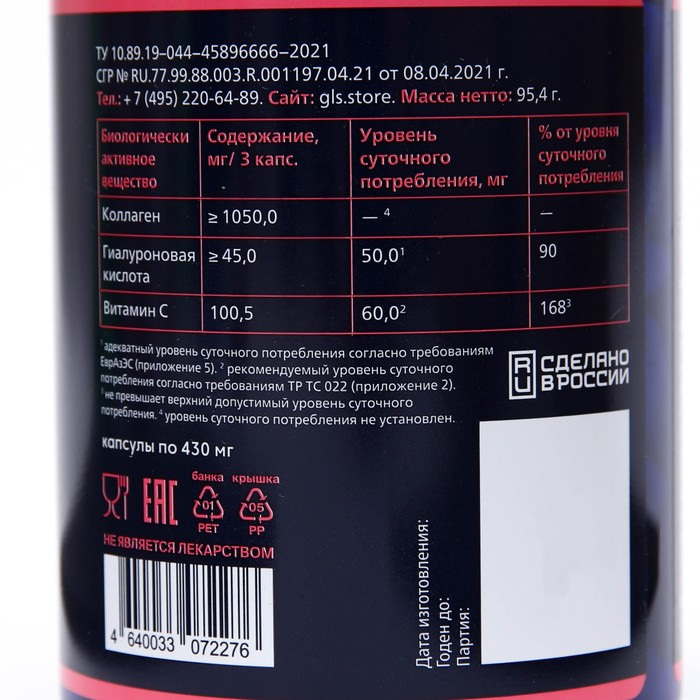 Глутатион GLS для молодости и красоты, 60 капсул по 150 мг
