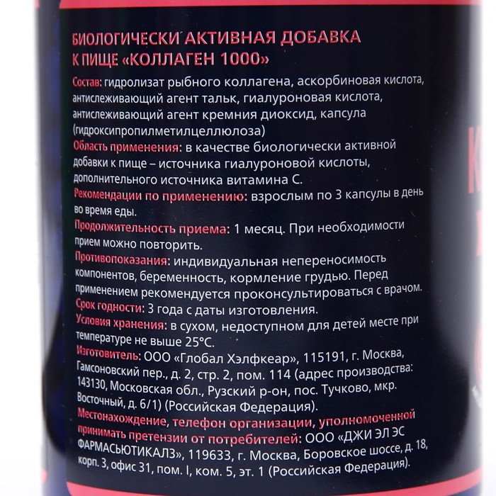 Состав: 3 вегетарианские капсулы (суточная доза) содержат: гидролизат рыбного коллагена – 1050 мг, гиалуроновая кислота – 45 мг, аскорбиновая кислота - 100,5 мг.