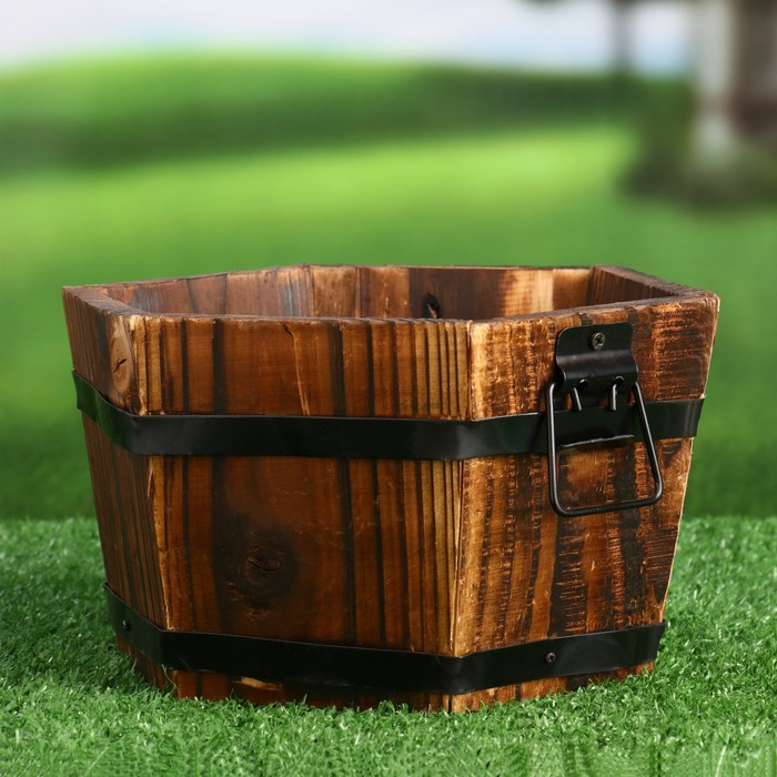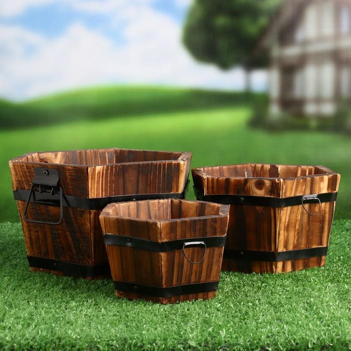 Набор деревянных кашпо, 6-ти угольных 19х16х13см