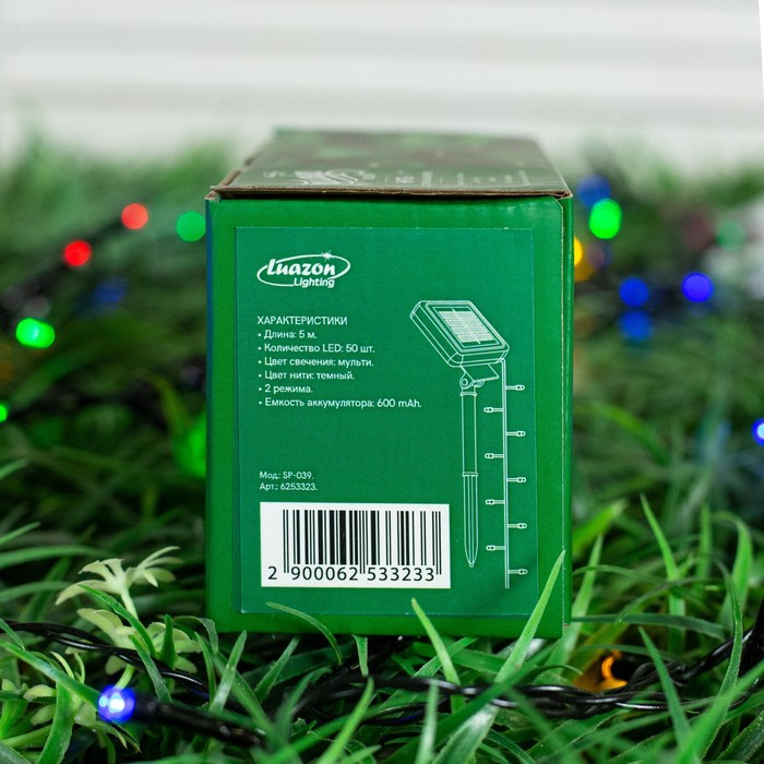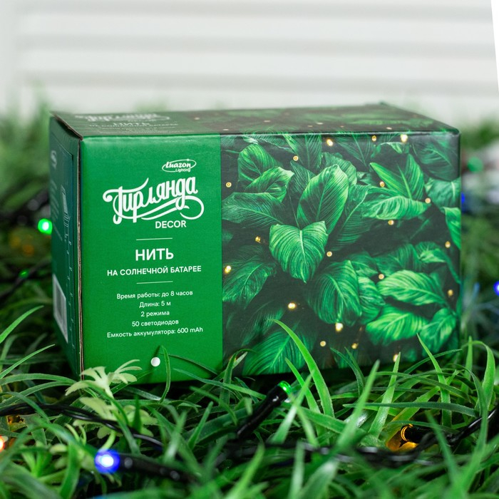 Гирлянда «Нить» 5 м, IP44, тёмная нить, 50 LED, свечение мульти, 2 режима, солнечная батарея