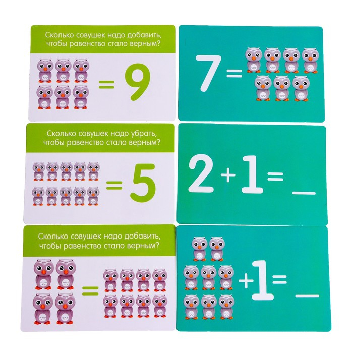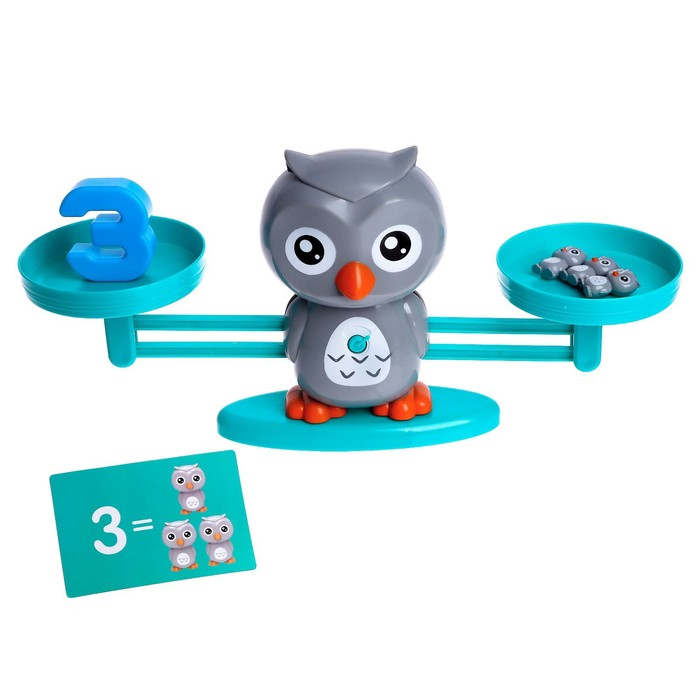 - Изучайте принцип равновесия. Попросите малыша положить на одну чашу цифру 3. Расскажите, что на вторую нужно положить цифры 1 и 2: тогда будет соблюдён принцип равновесия. Потренируйте его мышление на примерах с совушками.