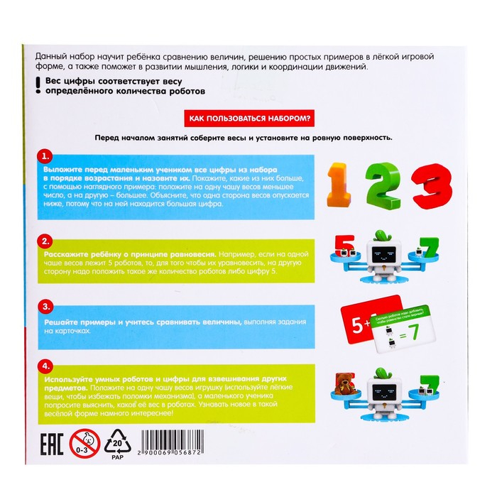 Детские развивающие математические весы «Умный робот», по методике Монтессори