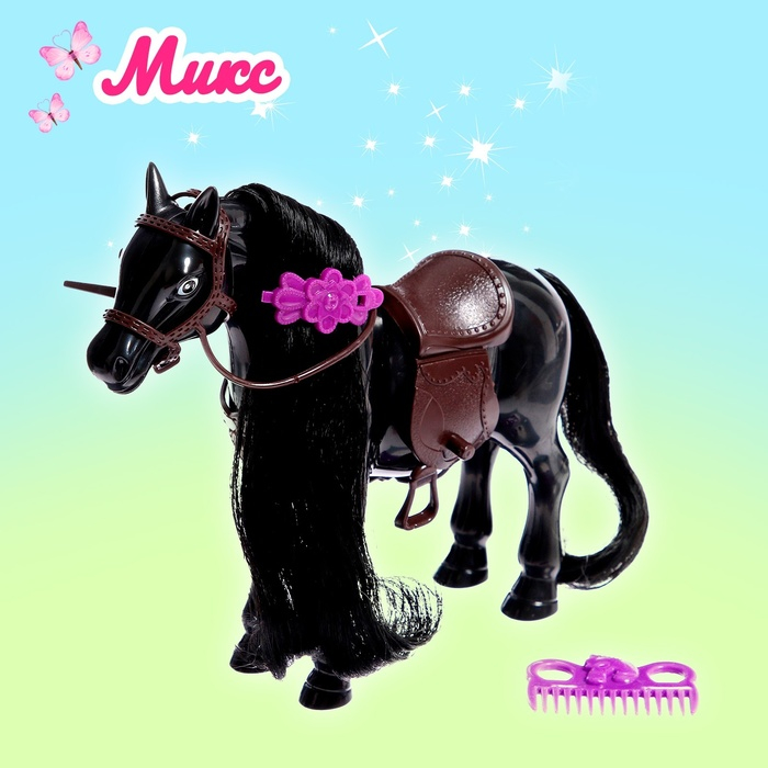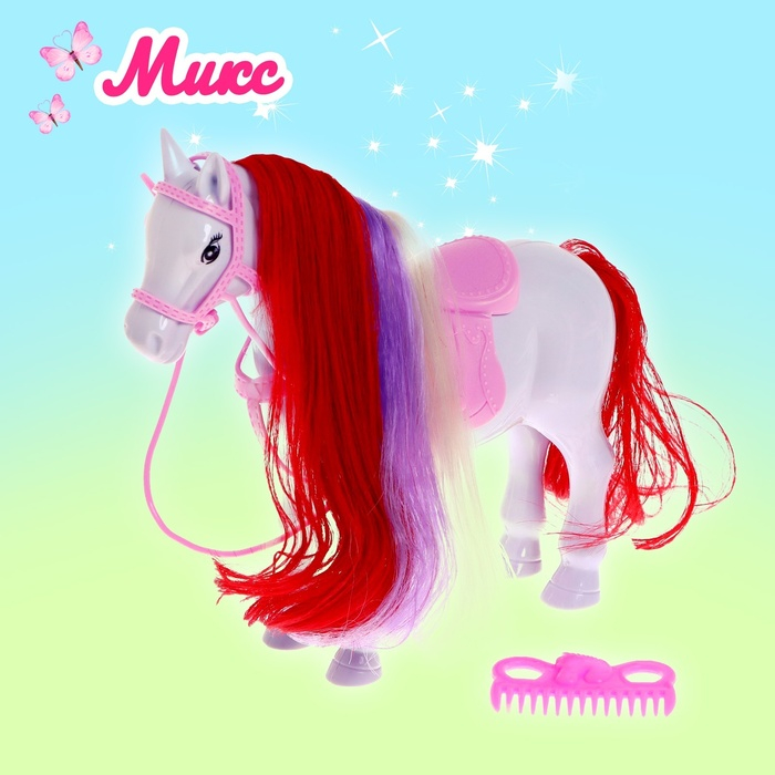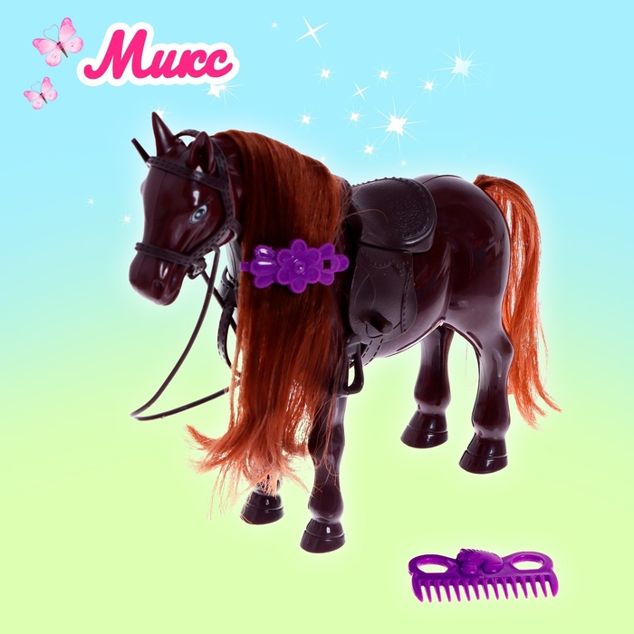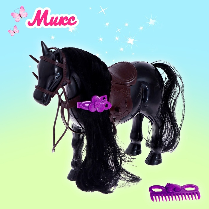 - Заколочка снимается, лошадке можно делать разные причёски — для этого в комплект входит расчёска.