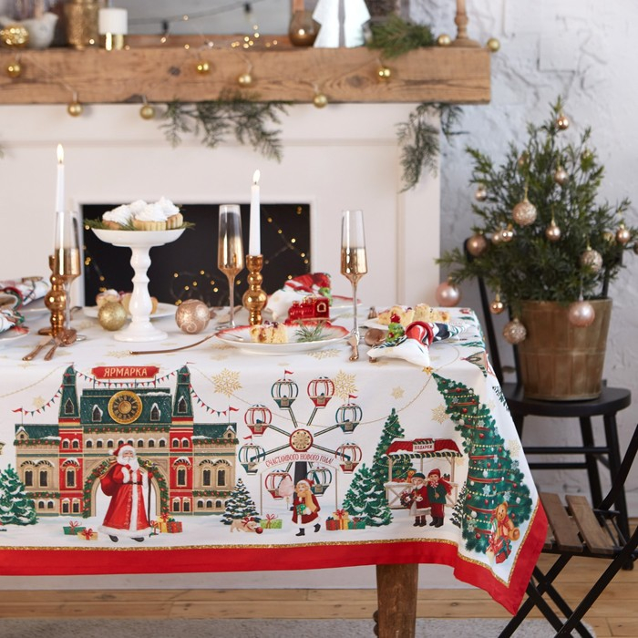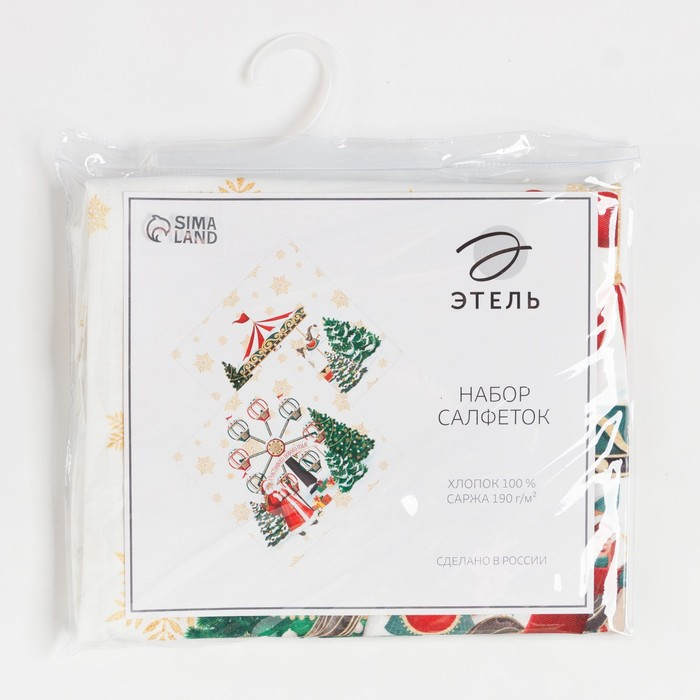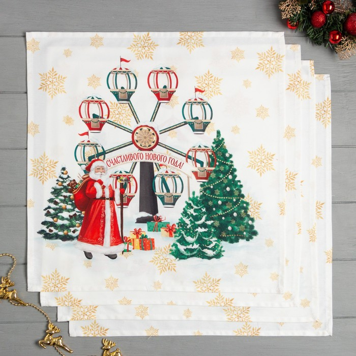 Набор новогодних салфеток Этель «Новогодняя ярмарка», 40х40см 4 шт, хлопок, саржа