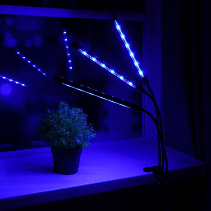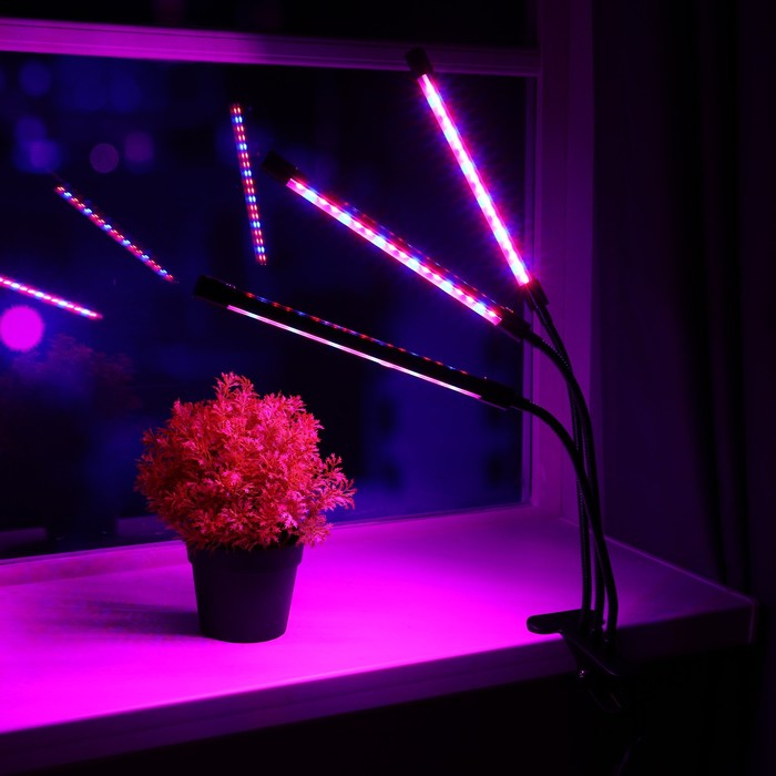 Фитосветильник светодиодный, 18 Вт, 250 мм, IP66, 5 В, USB, биколорный, прищепка, с таймером