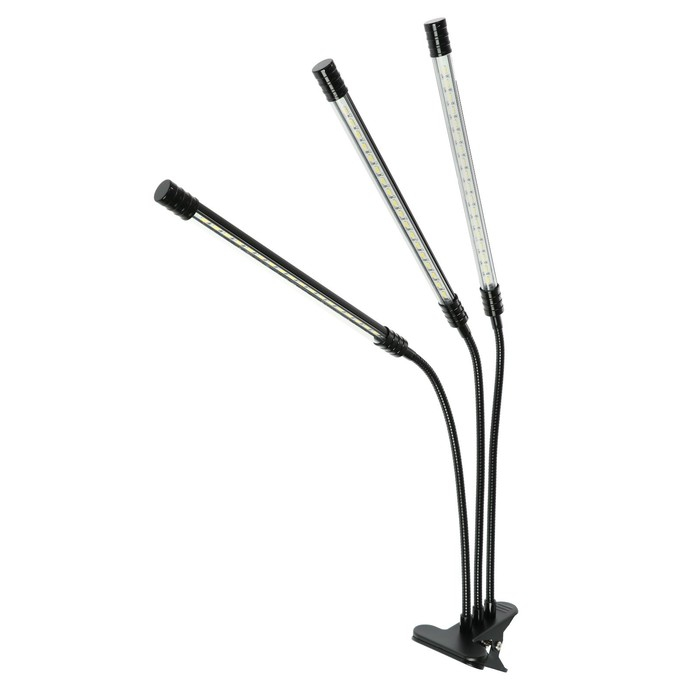 Фитосветильник светодиодный, 18 Вт, 250 мм, IP66, 5 В, USB, биколорный, прищепка, с таймером