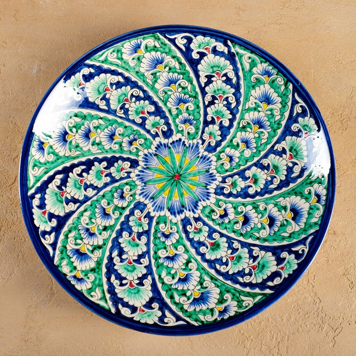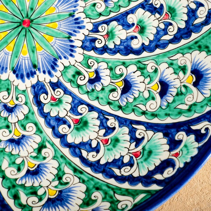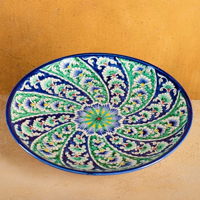 Ляган Риштанская Керамика "Цветы", 32 см, синий