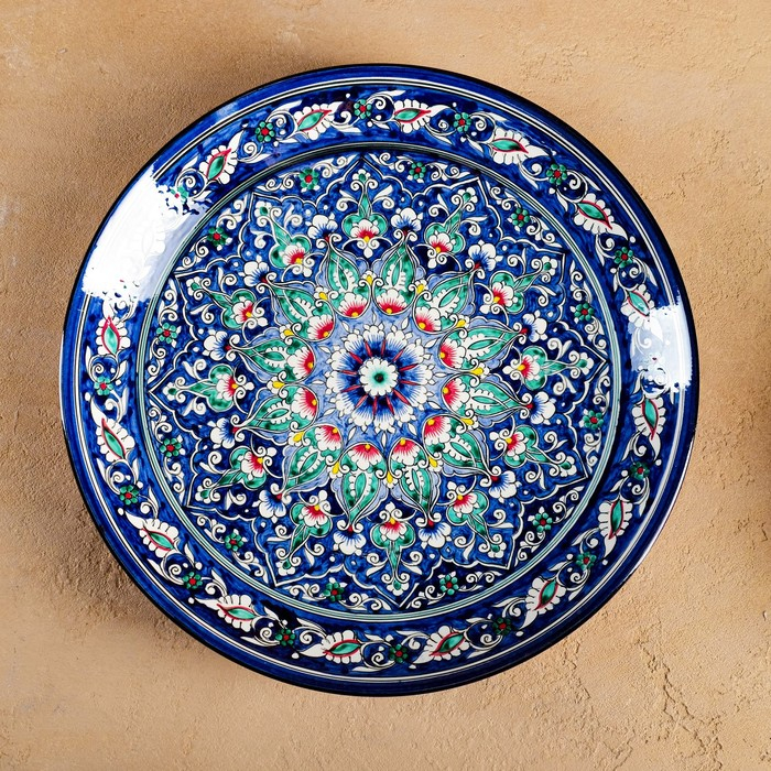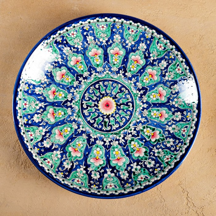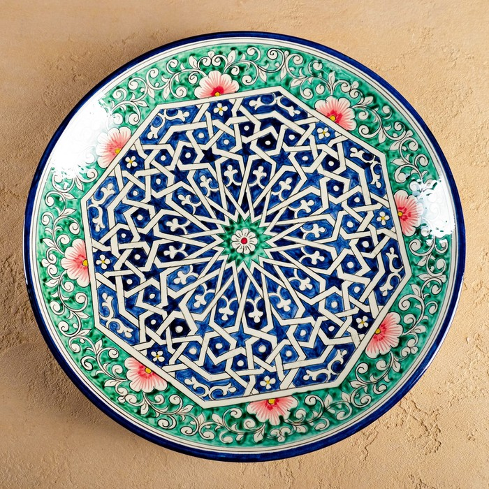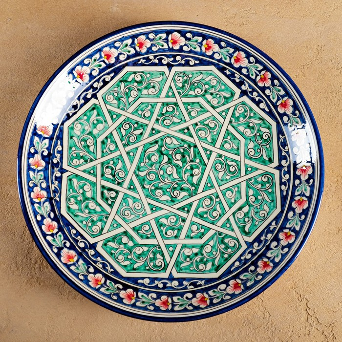 Ляган Риштанская Керамика "Узоры", 32 см, зелёный