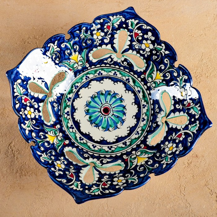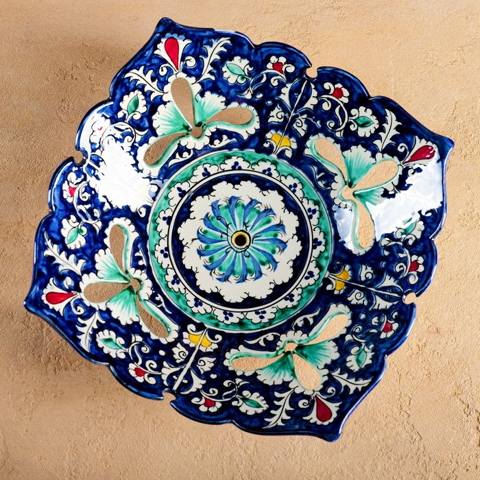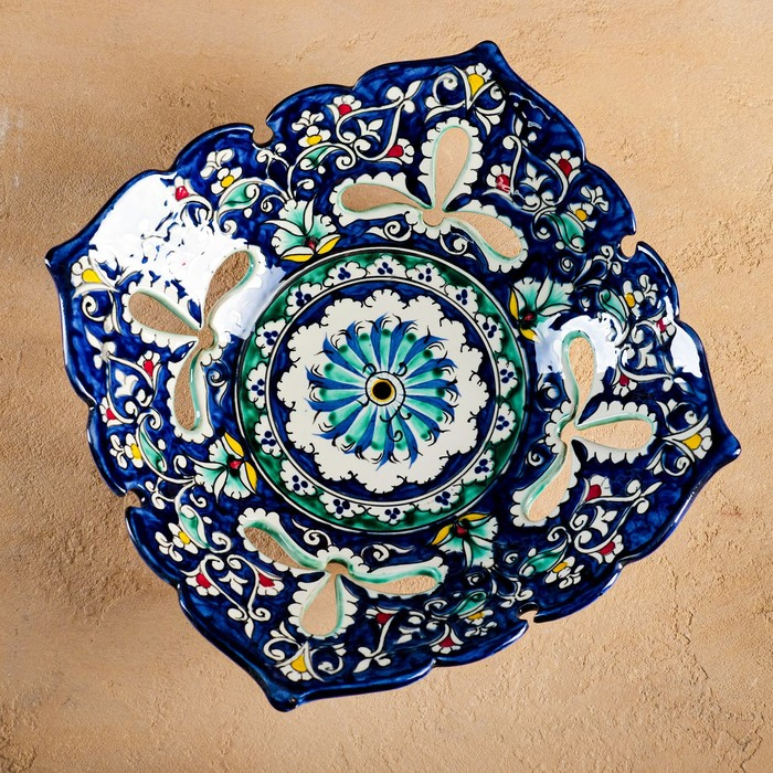 Фруктовница Риштанская Керамика "Узоры", 25 см, синяя