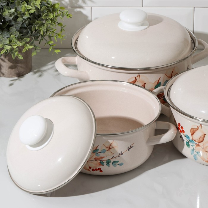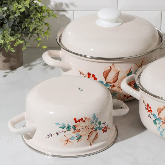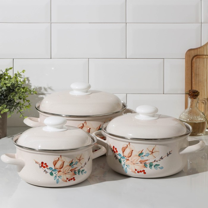 Набор эмалированных кастрюль «Китайская роза», 3 предмета: 1,5 л, 2 л, 3 л, индукция