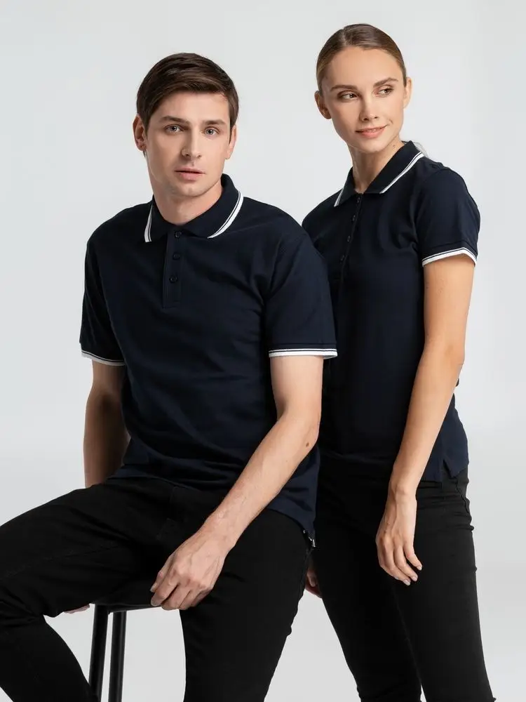 Рубашка поло мужская с контрастной отделкой Practice 270, темно-синий/белый, размер M