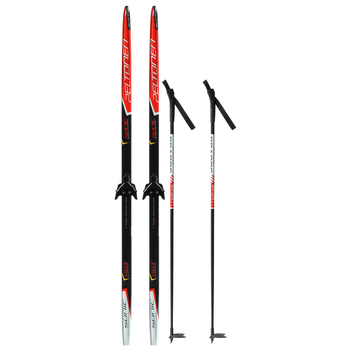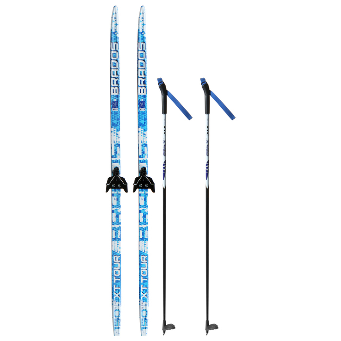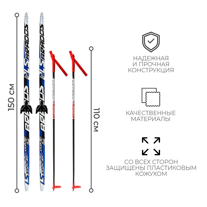 Комплект лыжный: пластиковые лыжи 150 см с насечкой, стеклопластиковые палки 110 см, крепления NN75 мм, цвета МИКС