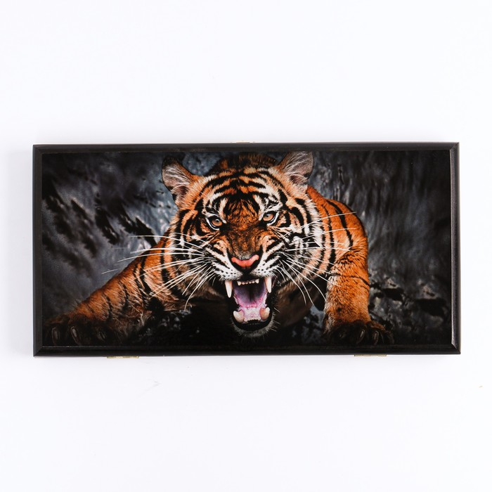 Нарды деревянные большие, настольная игра "Оскал тигра", 40 x 40 см, с шашками