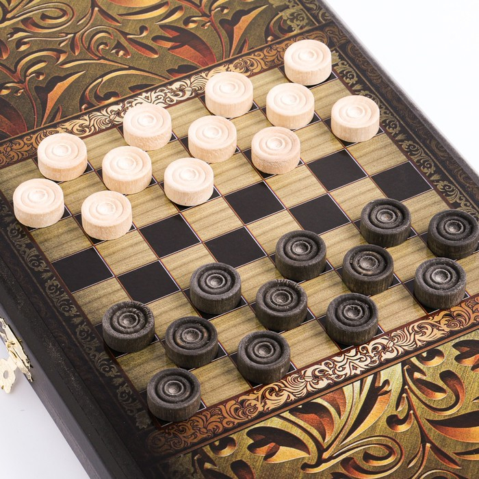 Нарды деревянные большие, настольная игра "Узор", 40 х 40 см, с полем для игры в шашки