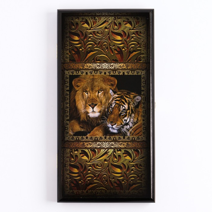Нарды деревянные большие, настольная игра "Лев и тигр", 40 x 40 см, с шашками