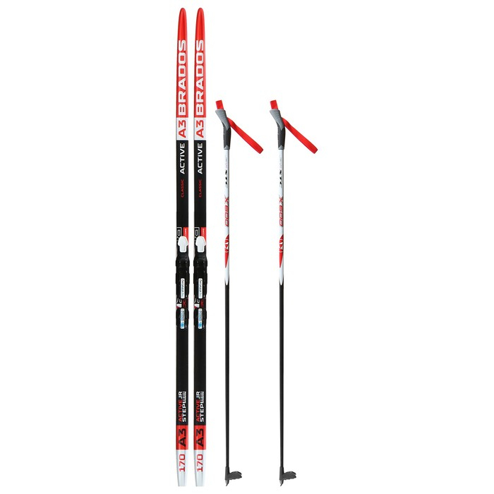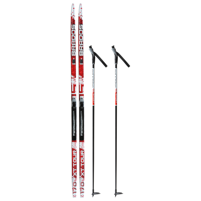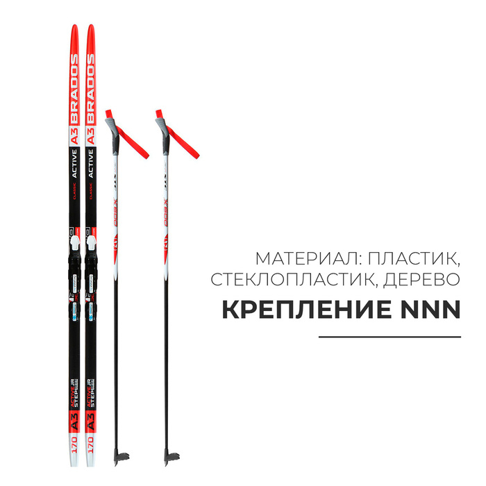 Комплект лыжный: пластиковые лыжи 170 см с насечкой, стеклопластиковые палки 130 см, крепления NNN, цвета МИКС