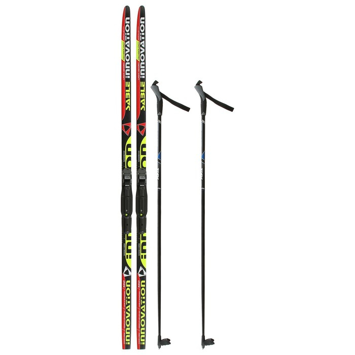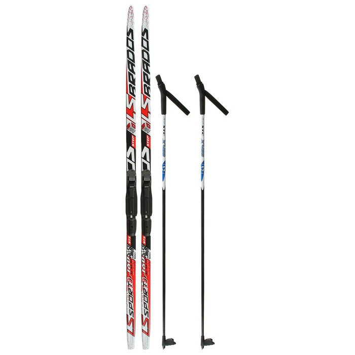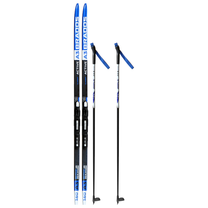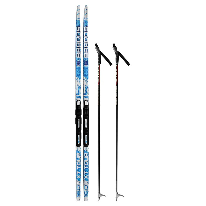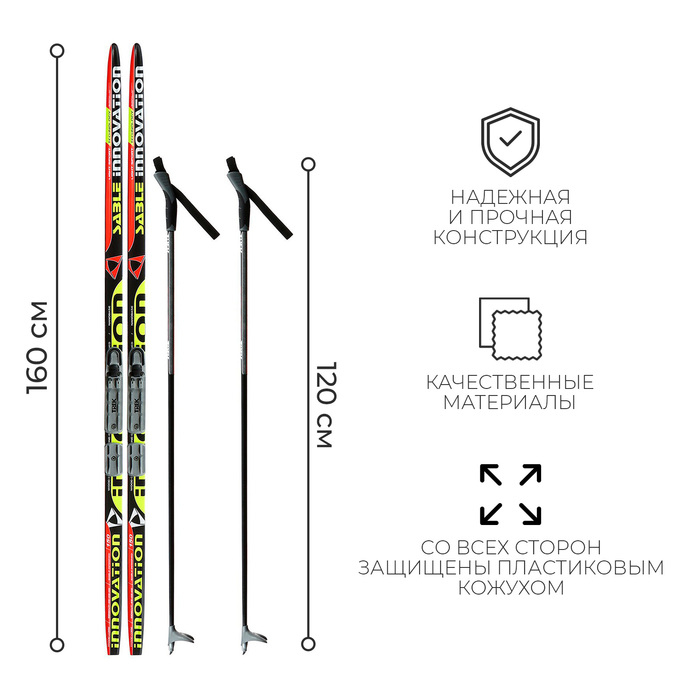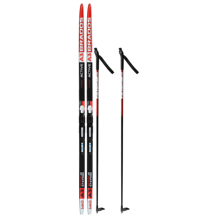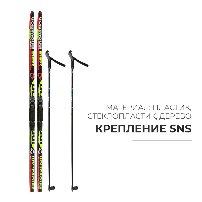 Комплект лыжный: пластиковые лыжи 160 см с насечкой, стеклопластиковые палки 120 см, крепления SNS, цвета МИКС