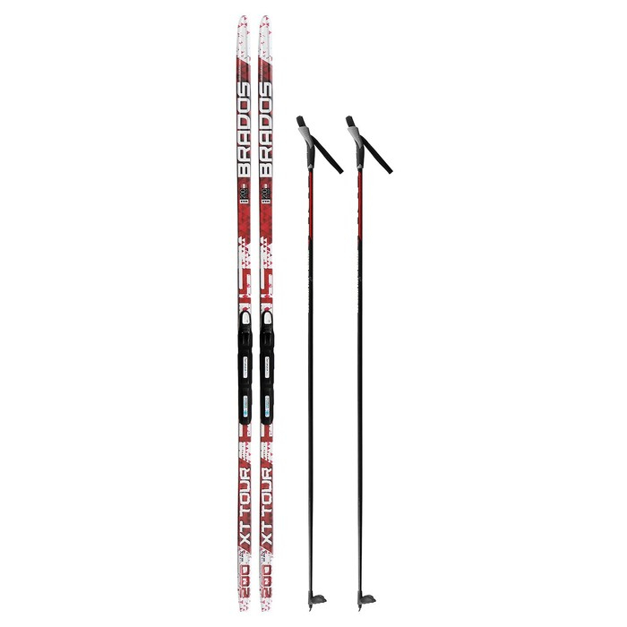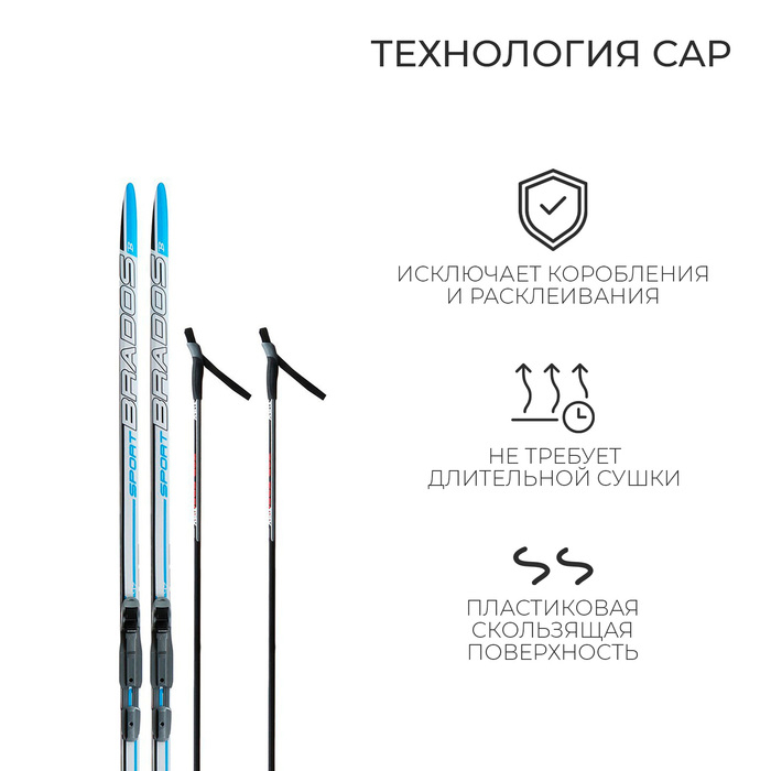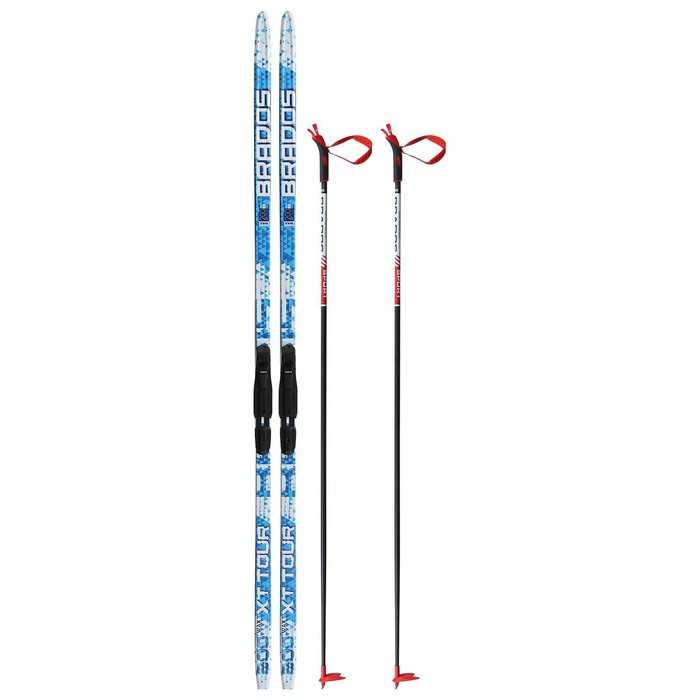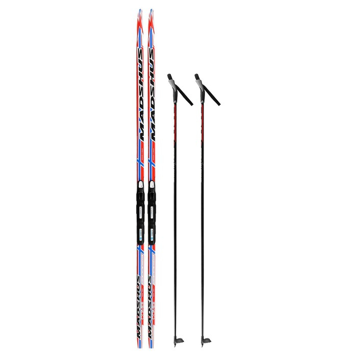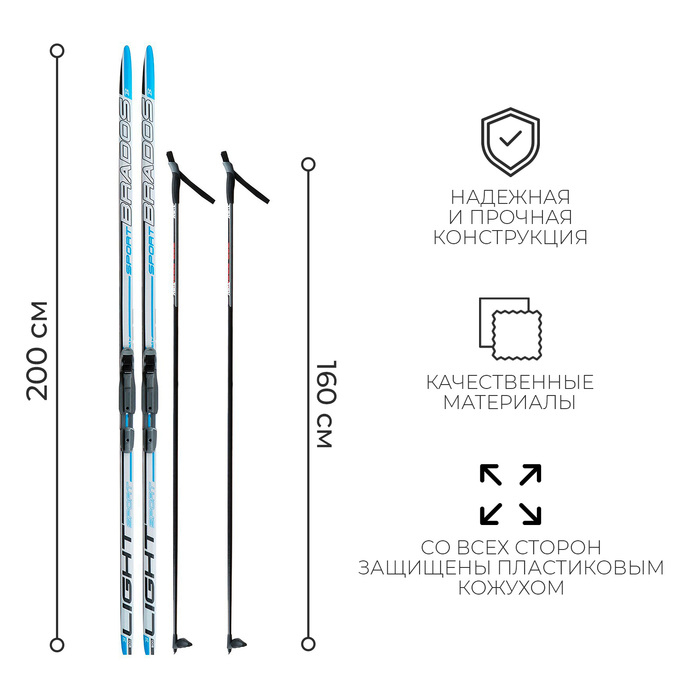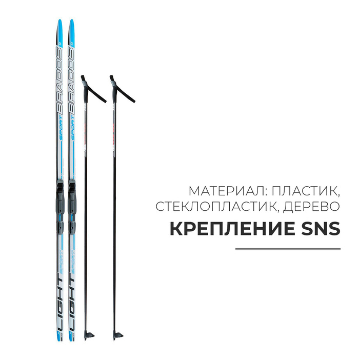 Комплект лыжный: пластиковые лыжи 200 см без насечек, стеклопластиковые палки 160 см, крепления SNS, цвета МИКС