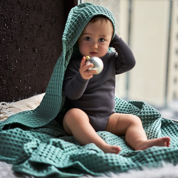 Полотенце уголок вафельное Крошка Я "Boho" 120*120 см, цвет мятный, 100%хлопок, 290 г/м2