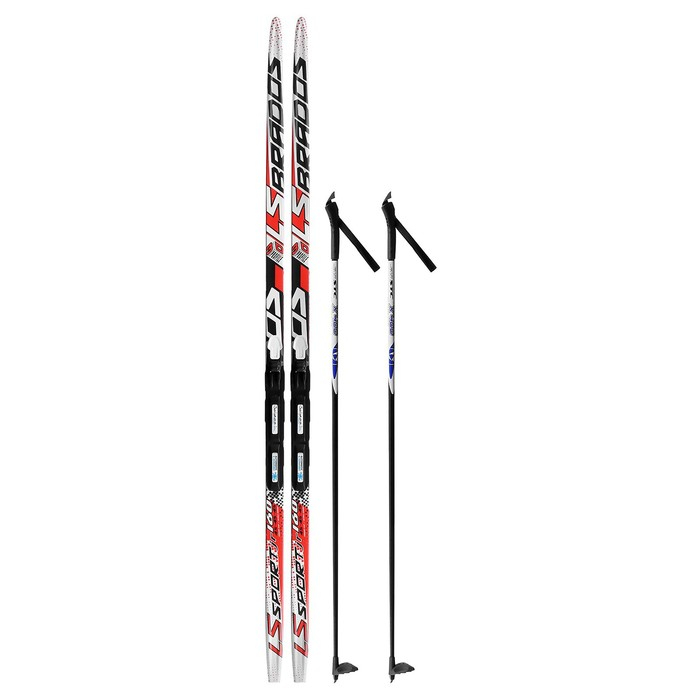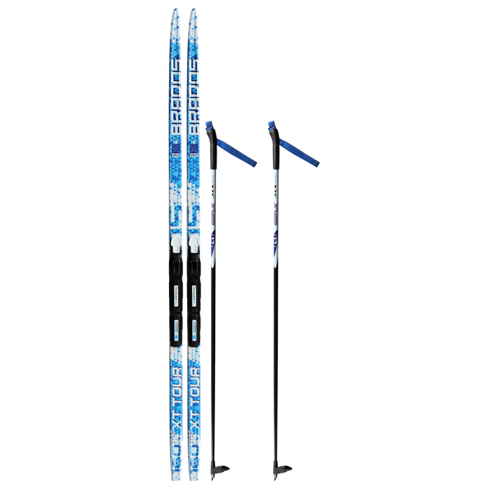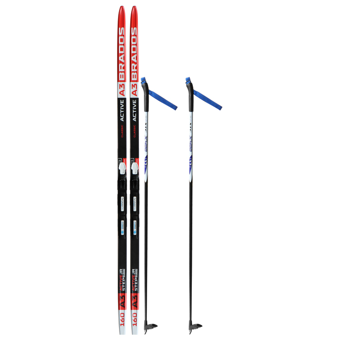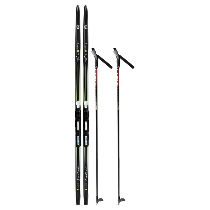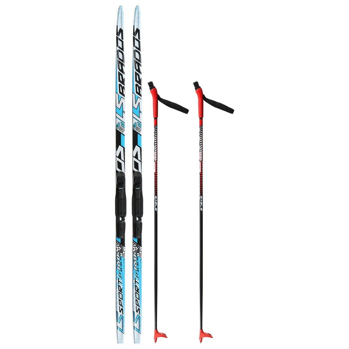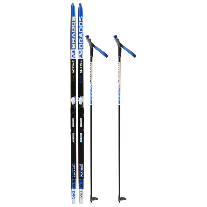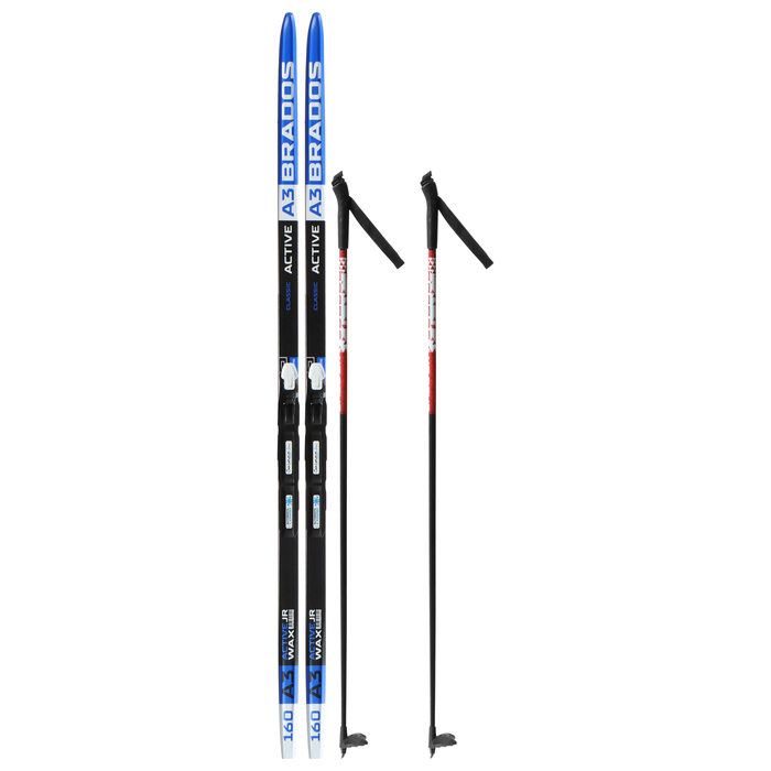 Комплект лыжный: пластиковые лыжи 160 см без насечек, стеклопластиковые палки 120 см, крепления SNS, цвета МИКС
