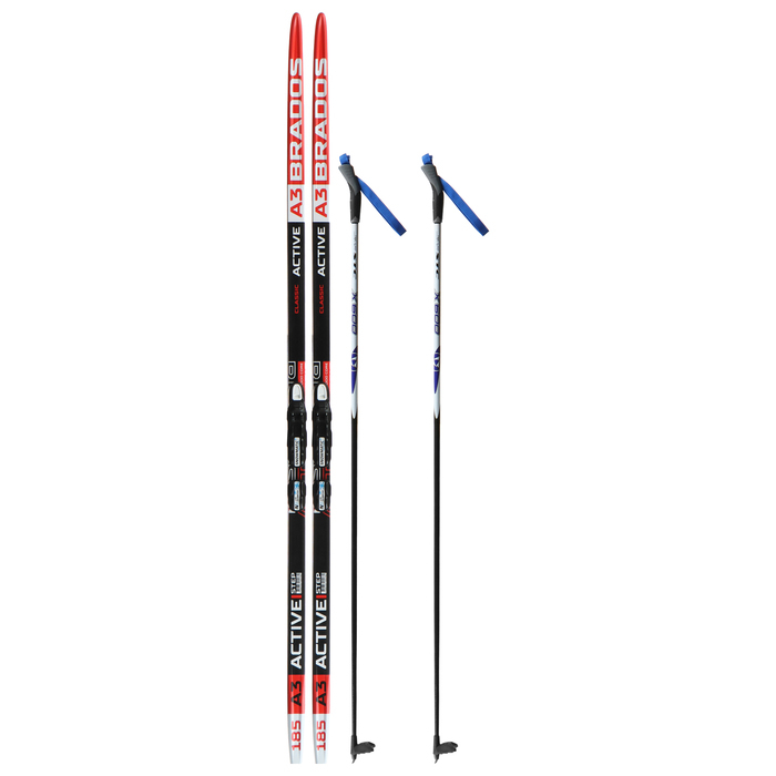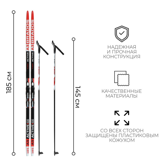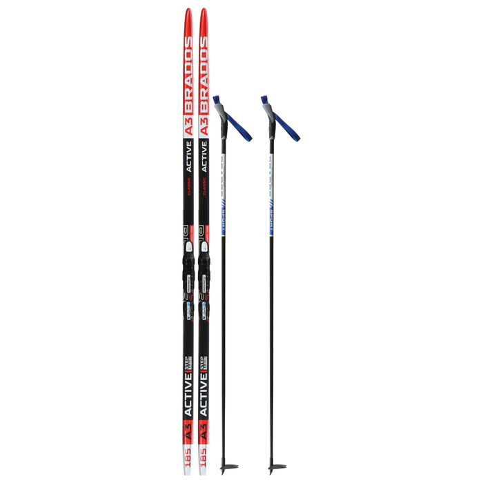 Комплект лыжный: пластиковые лыжи 185 см с насечкой, стеклопластиковые палки 145 см, крепления NNN, цвета МИКС