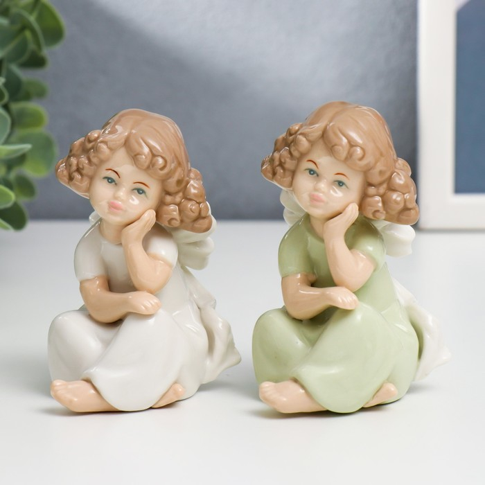 Сувенир керамика "Девочка с кудряшками, в платье с бантом" МИКС 9х4,5х5 см