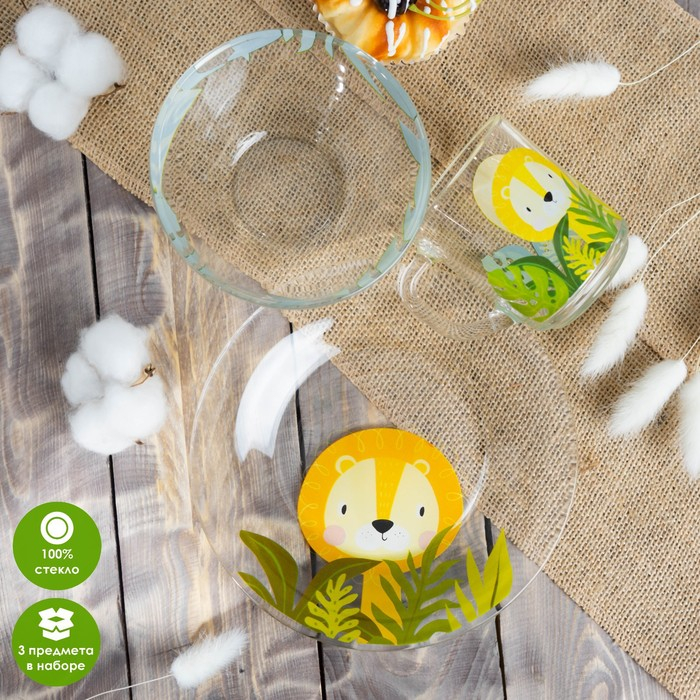 Набор детской посуды Доляна «Львёнок», 3 предмета: миска 450 мл, тарелка d=20 см, кружка 200 мл