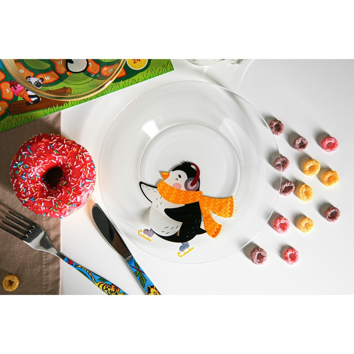 Яркая посуда с детским рисунком будет радовать малыша всякий раз, когда будет наступать время приёма пищи. Выполнена из высококачественного стекла, имеет насыщенным цветной рисунок. Сможет стать настоящим украшением кухни или приятным подарком для малыша!