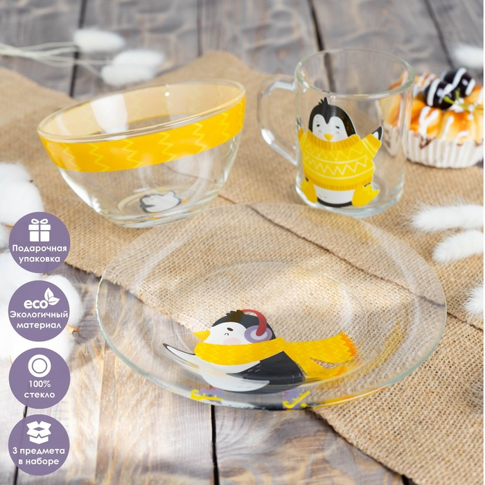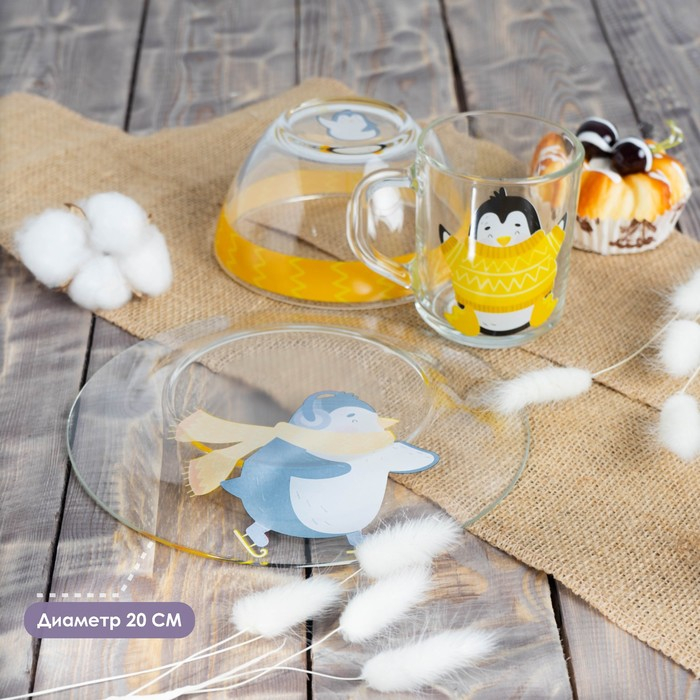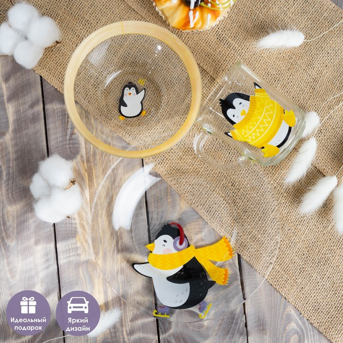 Набор детской посуды Доляна «Пингвинёнок», 3 предмета: миска 450 мл, тарелка d=20 см, кружка 200 мл