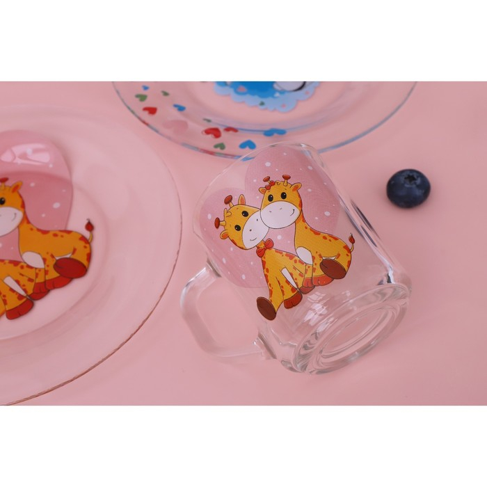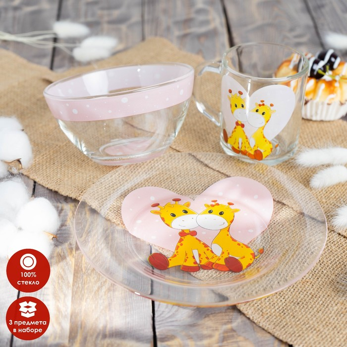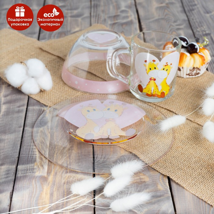 Набор детской посуды Доляна «Жирафы», 3 предмета: миска 450 мл, тарелка d=20 см, кружка 200 мл