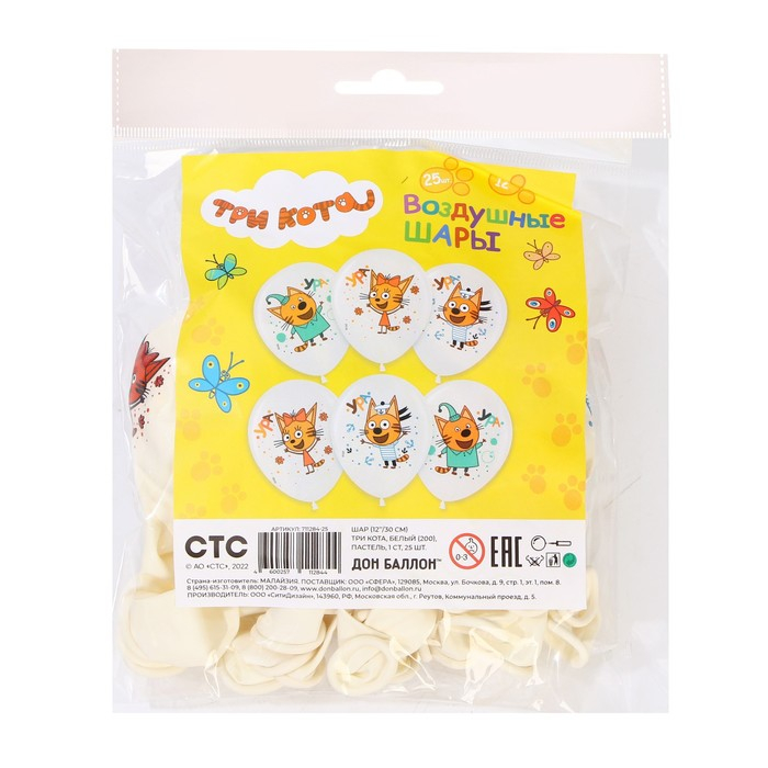 Шар латексный 12" «Три Кота», пастель, 1-сторонний, набор 25 шт., МИКС