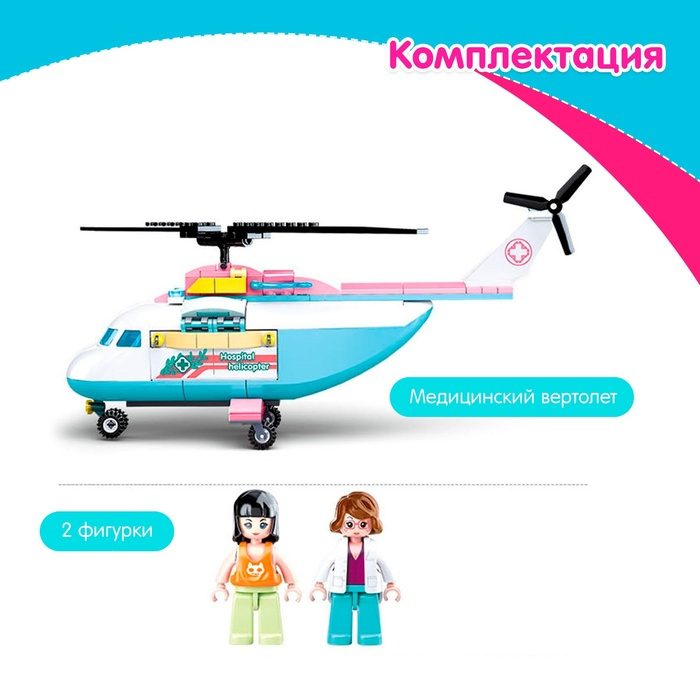Конструктор «Розовая Мечта. Медицинский вертолет», 163 детали