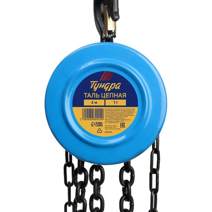 Таль цепная ТУНДРА предназначается для подъема грузов весом до 1000 кг.