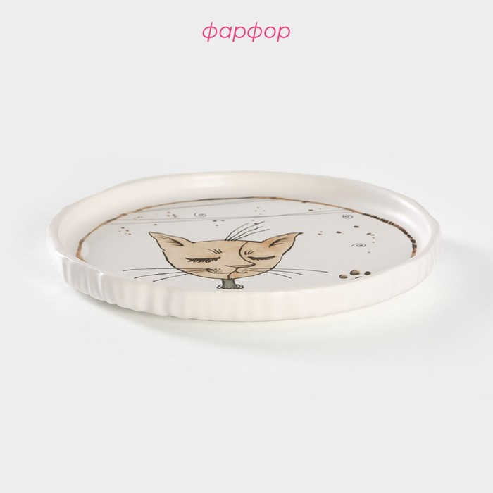 Тарелка фарфоровая десертная Доляна «Коты-аристократы», d=18,5 см