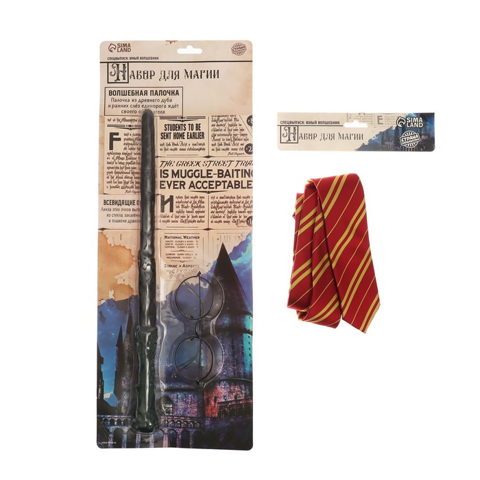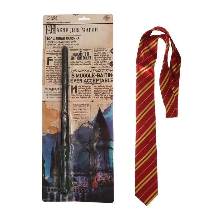 Набор для магии «Юный волшебник» поможет создать образ знаменитого персонажа, который знаком каждому. Круглые очки, волшебная палочка и галстук станут незаменимыми элементами костюма для тематических мероприятий или вечеринок. Галстук также подойдёт не только для создания завершенного образа, но и для повседневного использования, добавив нотку магии в любой наряд.