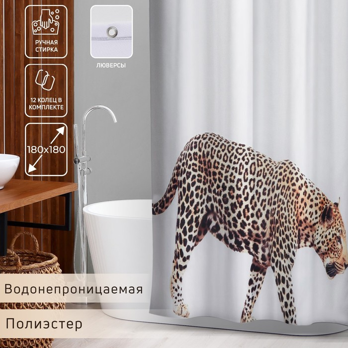 Штора для ванны Доляна «Гепард» с люверсами, 180×180 см