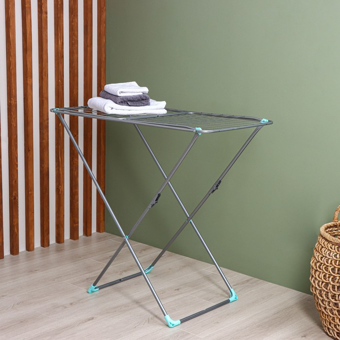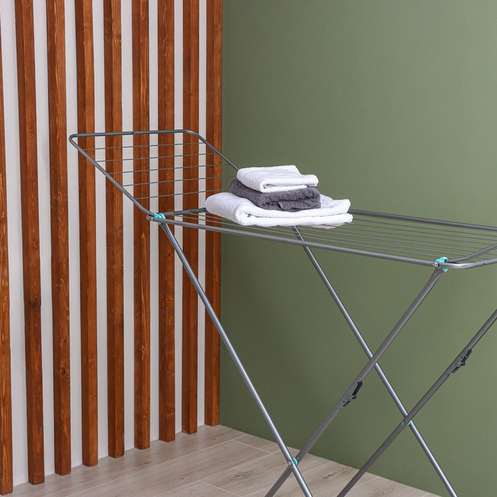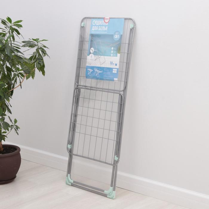 Сушилка для белья напольная складная, рабочая длина 18 м, высота от пола 95 см, ширина 54 см, цвет серый