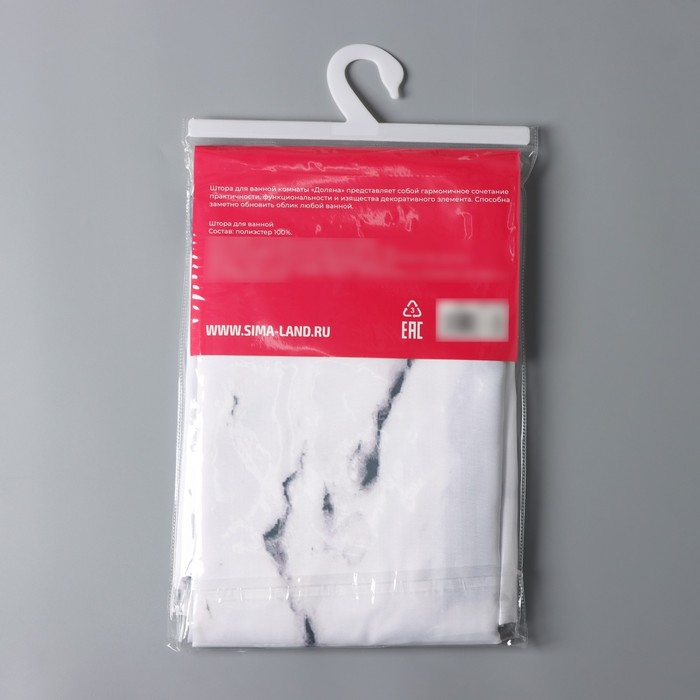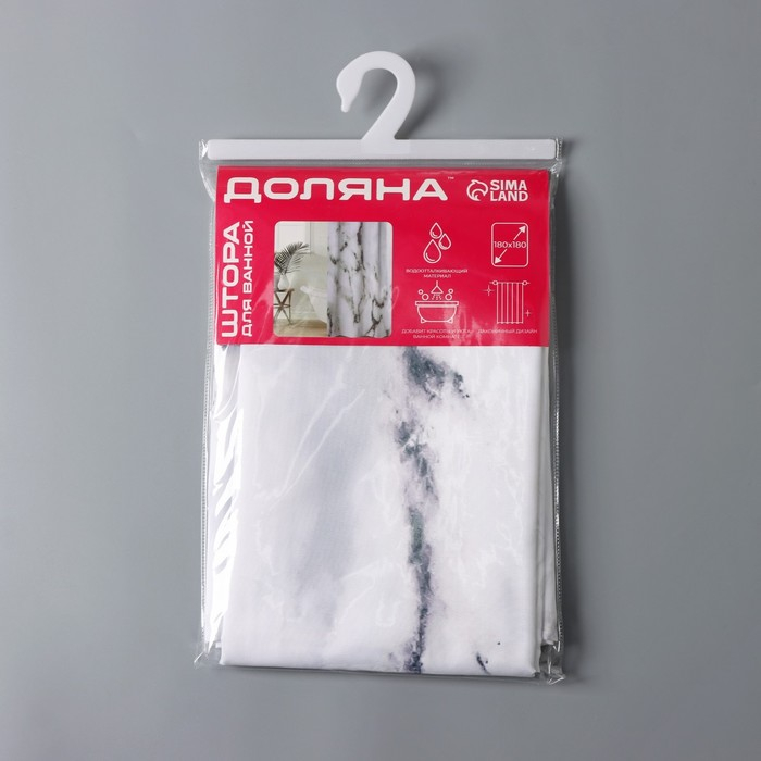 Штора для ванны Доляна «Мрамор» с люверсами, 180×180 см