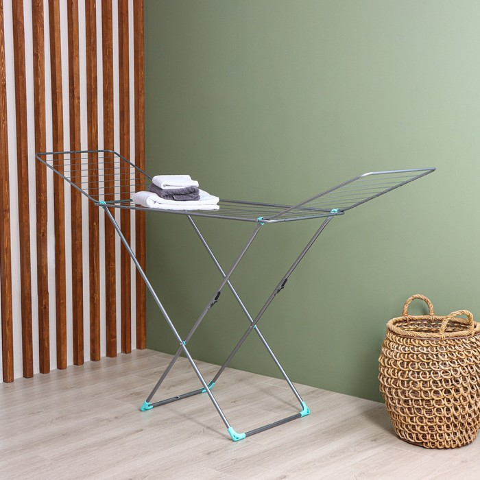 Сушилка для белья напольная складная, рабочая длина 20 м, высота от пола 95 см, ширина 54 см, цвет серый, ножки МИКС