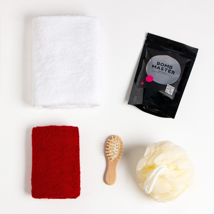 Мочалка, Полотенце, Расчёска для волос, Соль для ванны