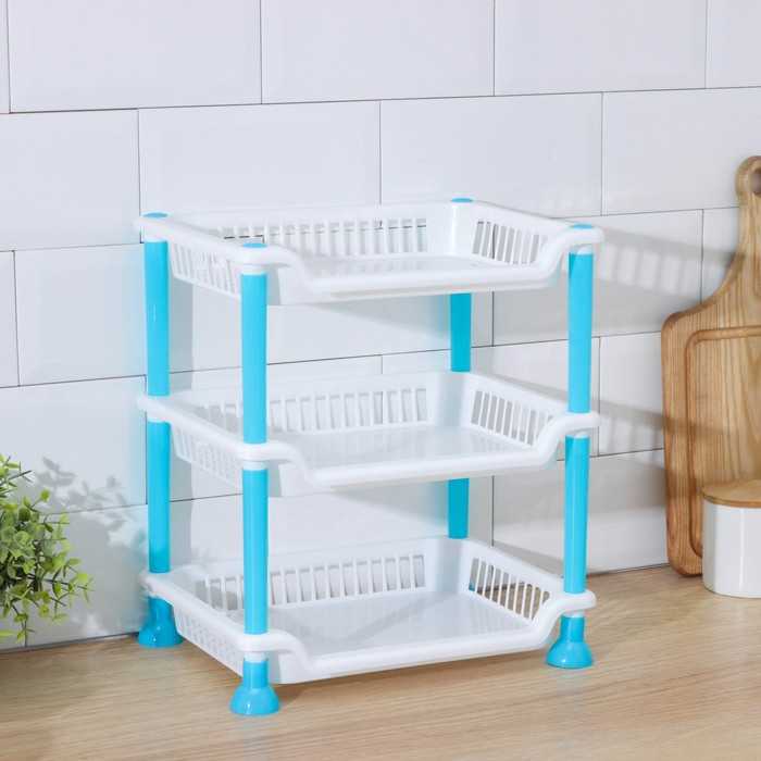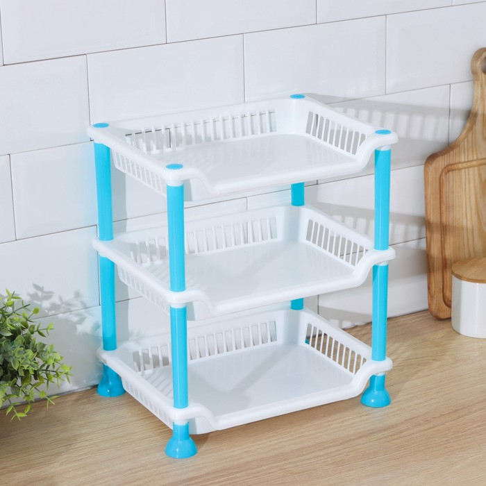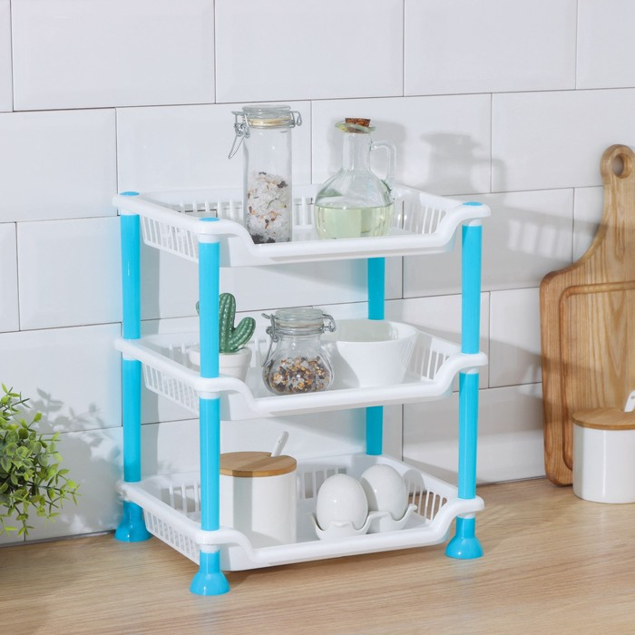 Этажерка настольная 3-х ярусная «Контраст», 21,5×28,5 см, цвет голубой