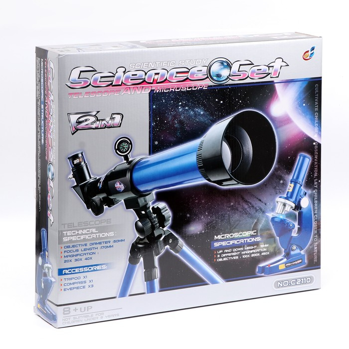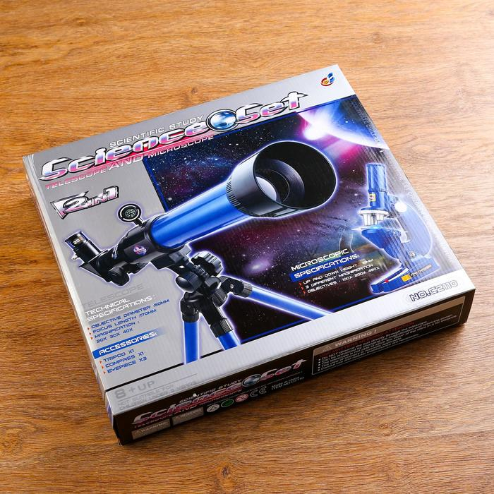 Набор обучающий "Опыт": телескоп настольный , сменные линзы 20х/ 30х/ 40х, микроскоп 100х/ 200х/ 450