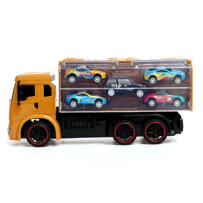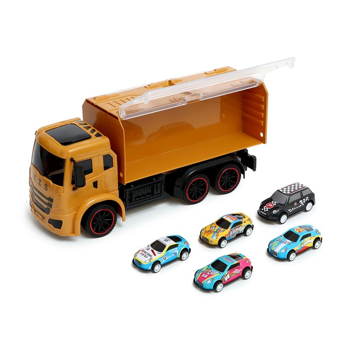 Грузовик радиоуправляемый «Автовоз», с 5 машинками, работает от аккумулятора, цвет жёлтый