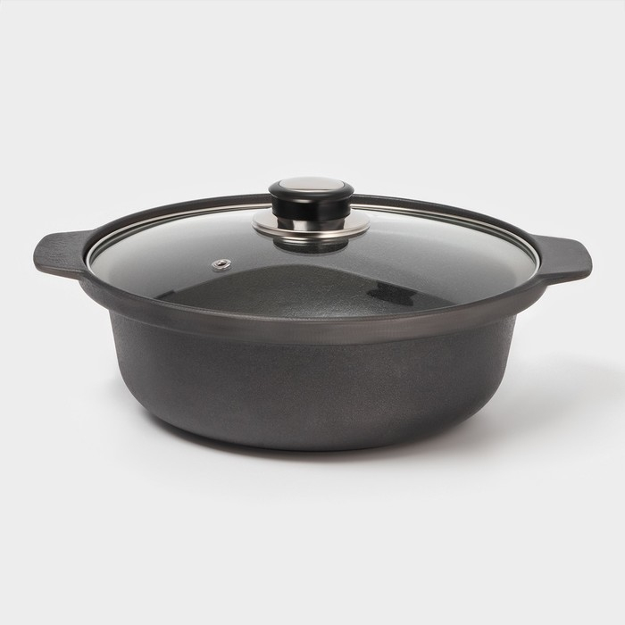 Жаровня чугунная «Биргер», 1,5 л, d=24 см, стеклянная крышка, цвет чёрный
